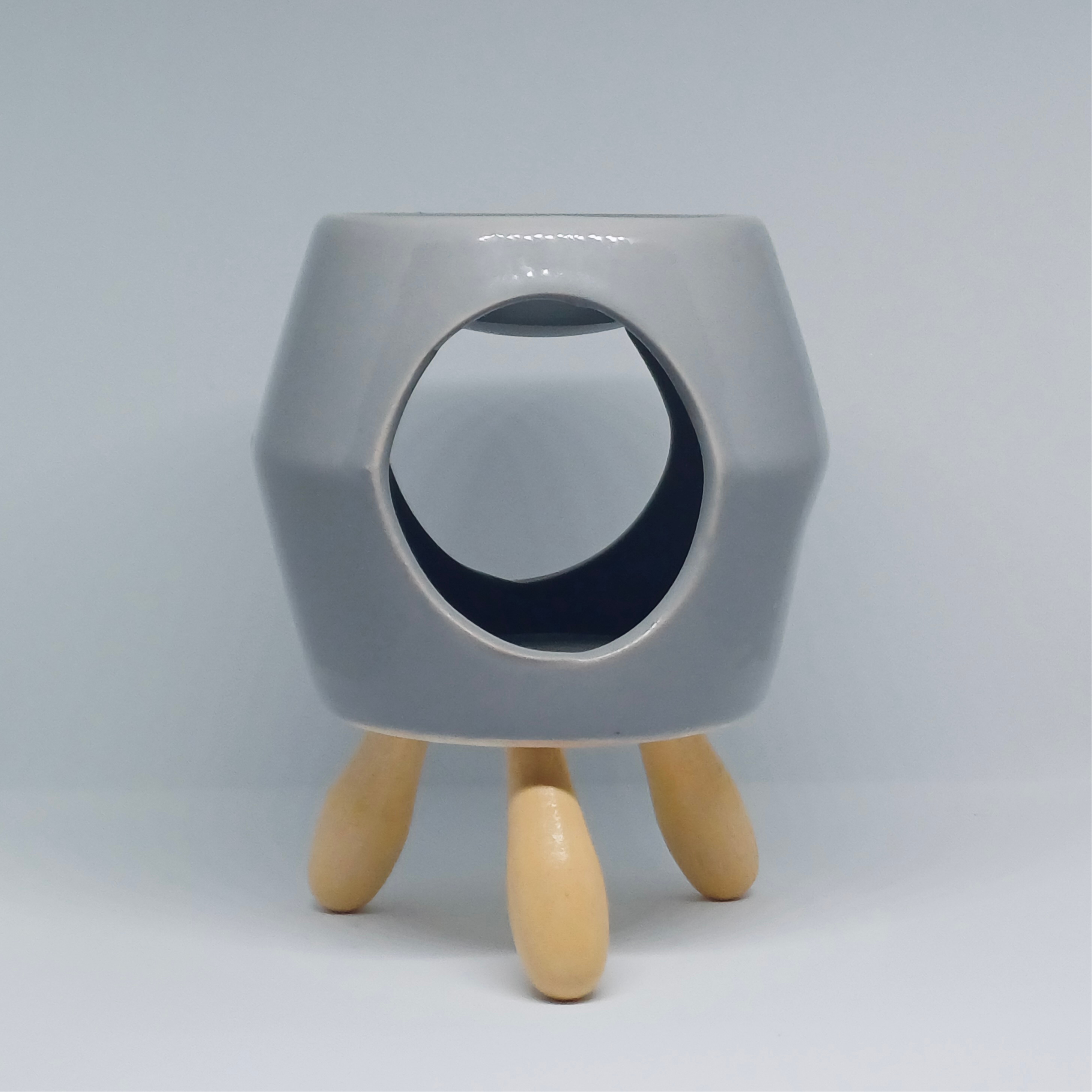 Abstract Ceramic Essential Oil Burner with Wooden Legs