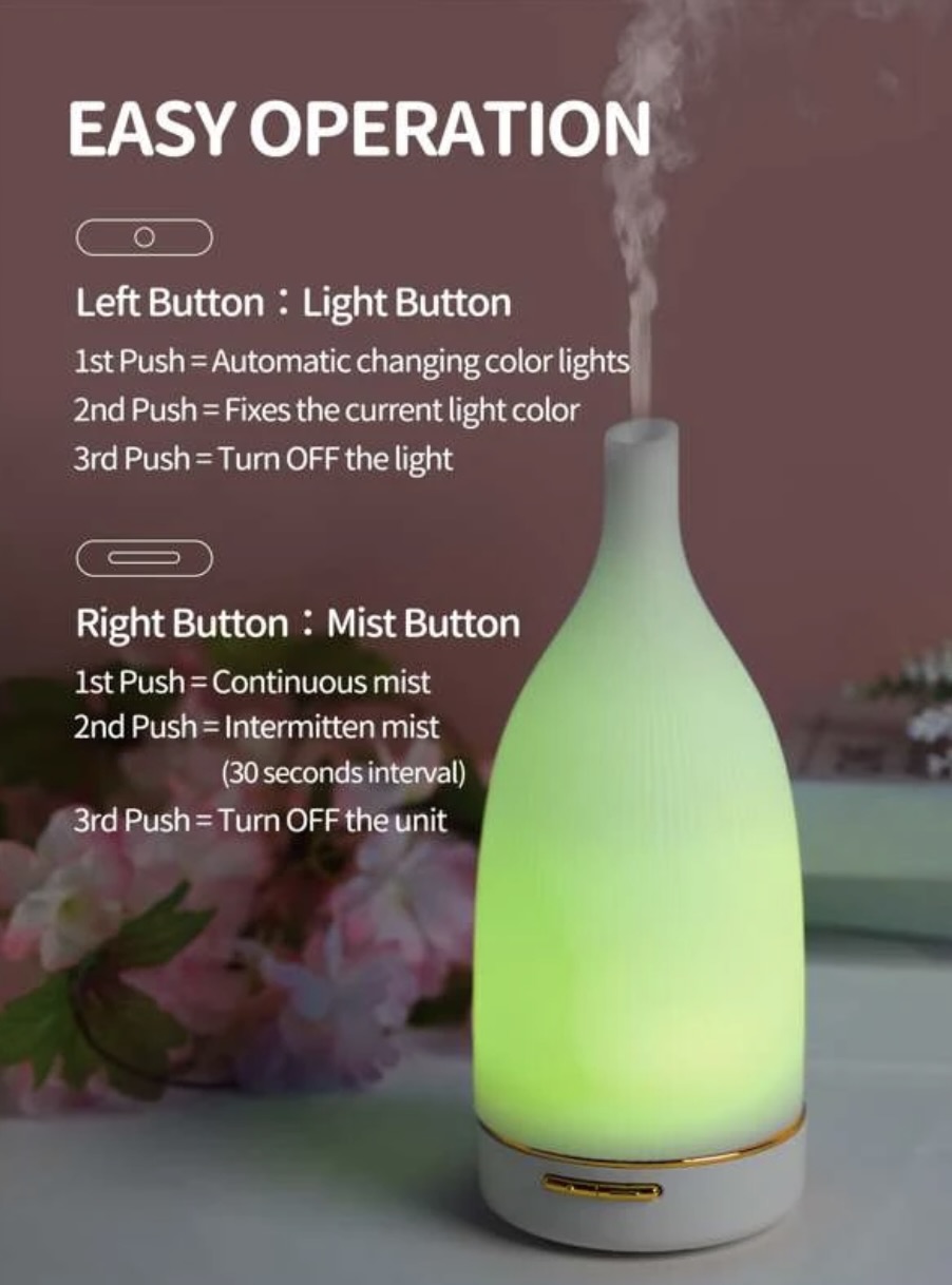 - Monitor for Any Issues: Keep an eye on the White Ultrasonic Aroma Diffuser while it’s in use. If you notice any unusual noises, odours, or behaviour, turn it off and address the issue before continuing use.